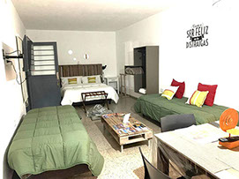 De 1 ambiente, amplio y confortable, dispone de 1 cama matrimonial y dos individuales. Capacidad max. 4 personas